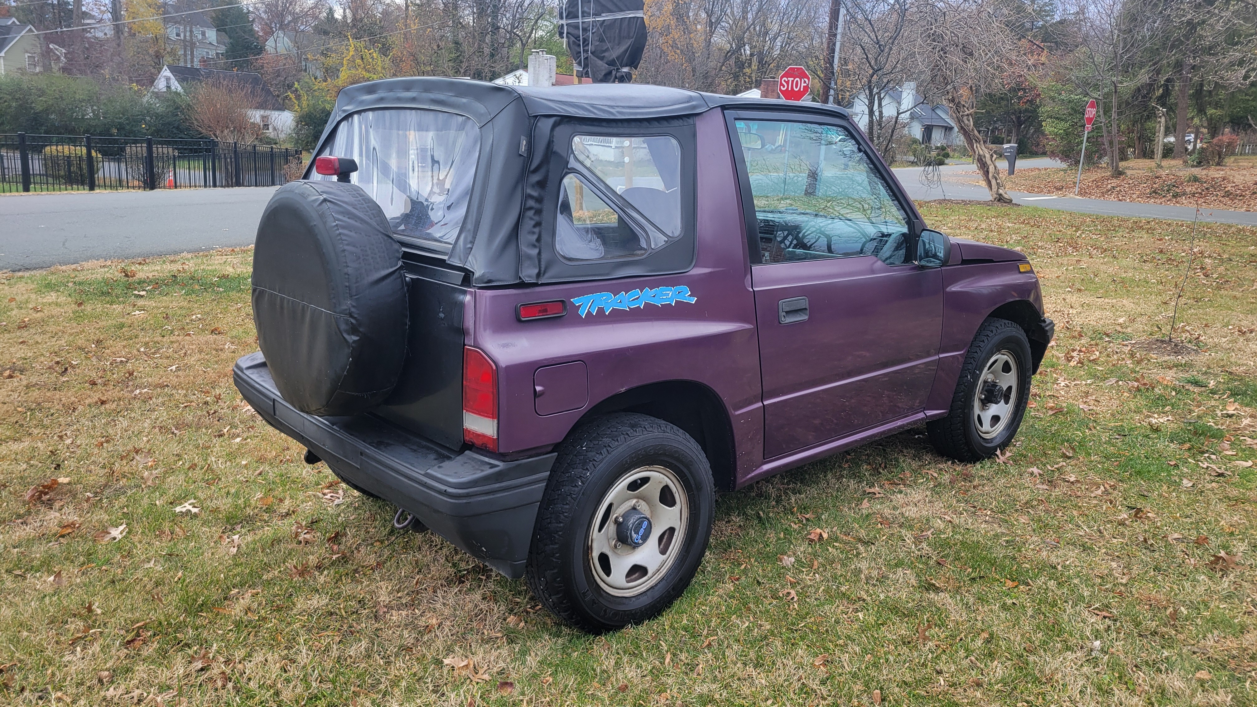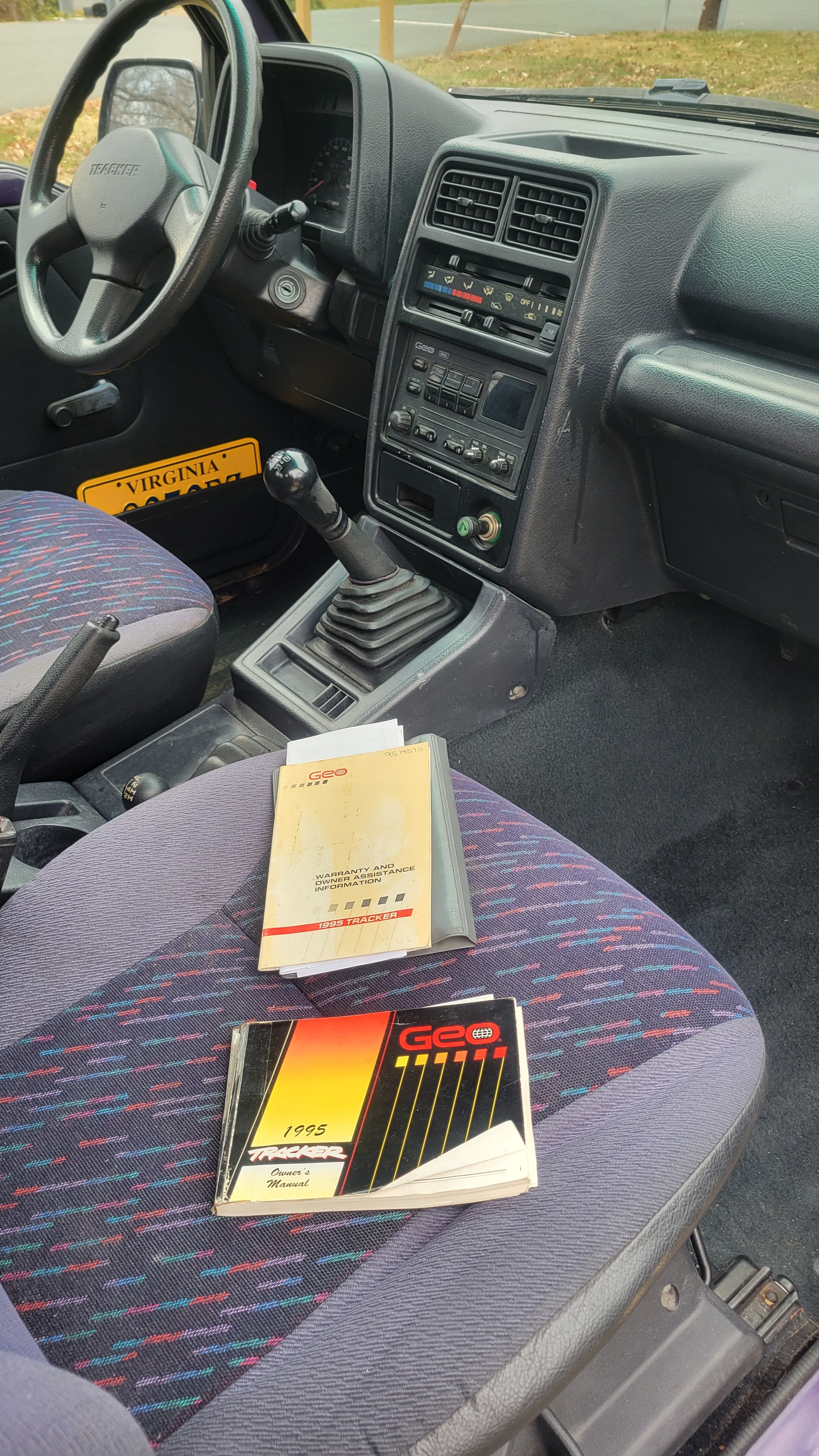 Original 4x4 Geo Tracker owned since 2013. We used it as a towed vehicle behind our Class A RV and we are replacing it with a classic Jeep Wrangler TJ. OD says approx 215000 miles and I estimate approximately 45K miles on the odometer were from being towed behind the RVs.