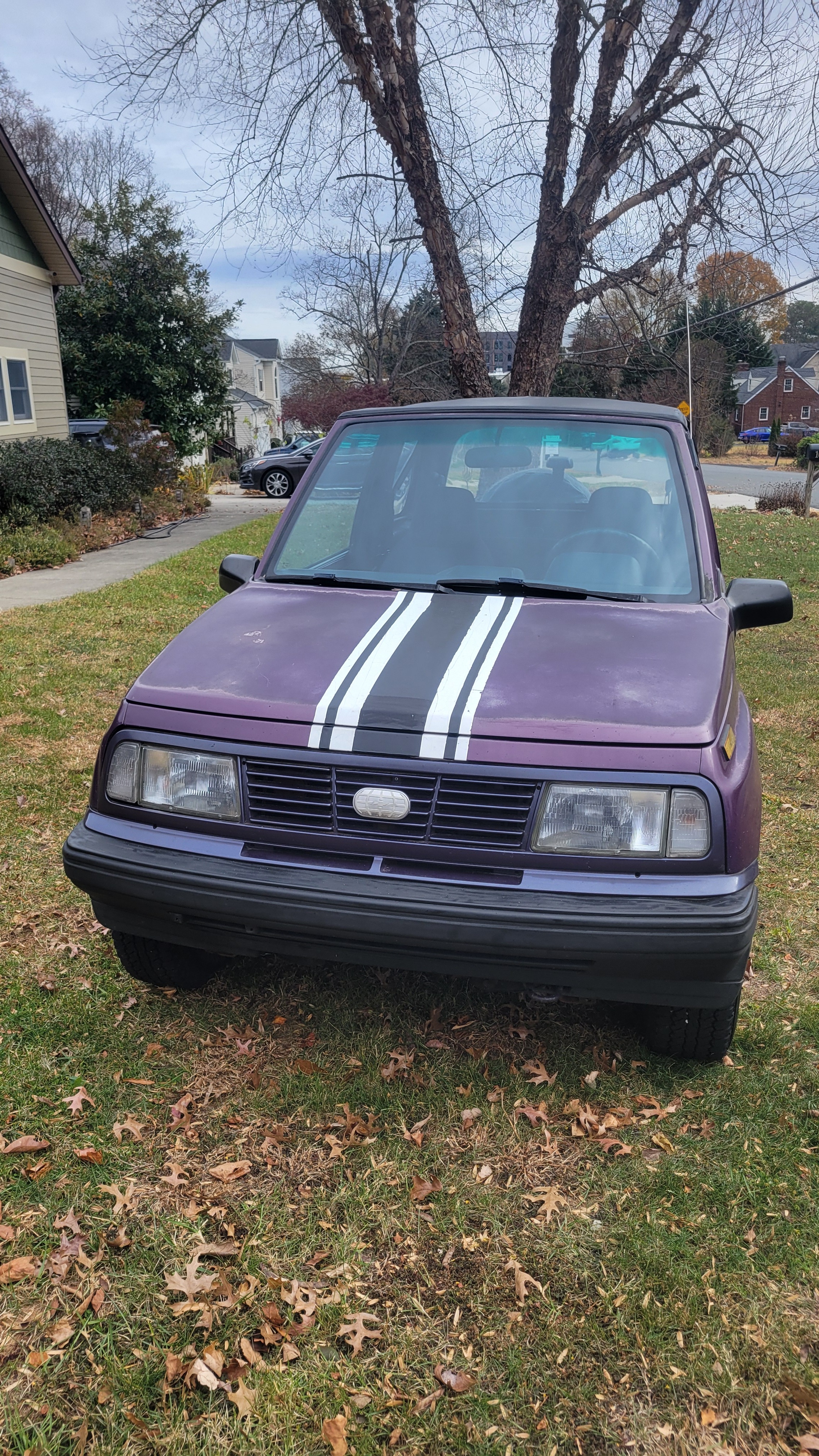 Very clean with typical rust for a Tracker. Alternator and battery had been replaced this year. Timing belt, water pump, hubs, windshield and top were replaced several years back. 4 wheel drive works as expected. Starts, shifts and runs well.