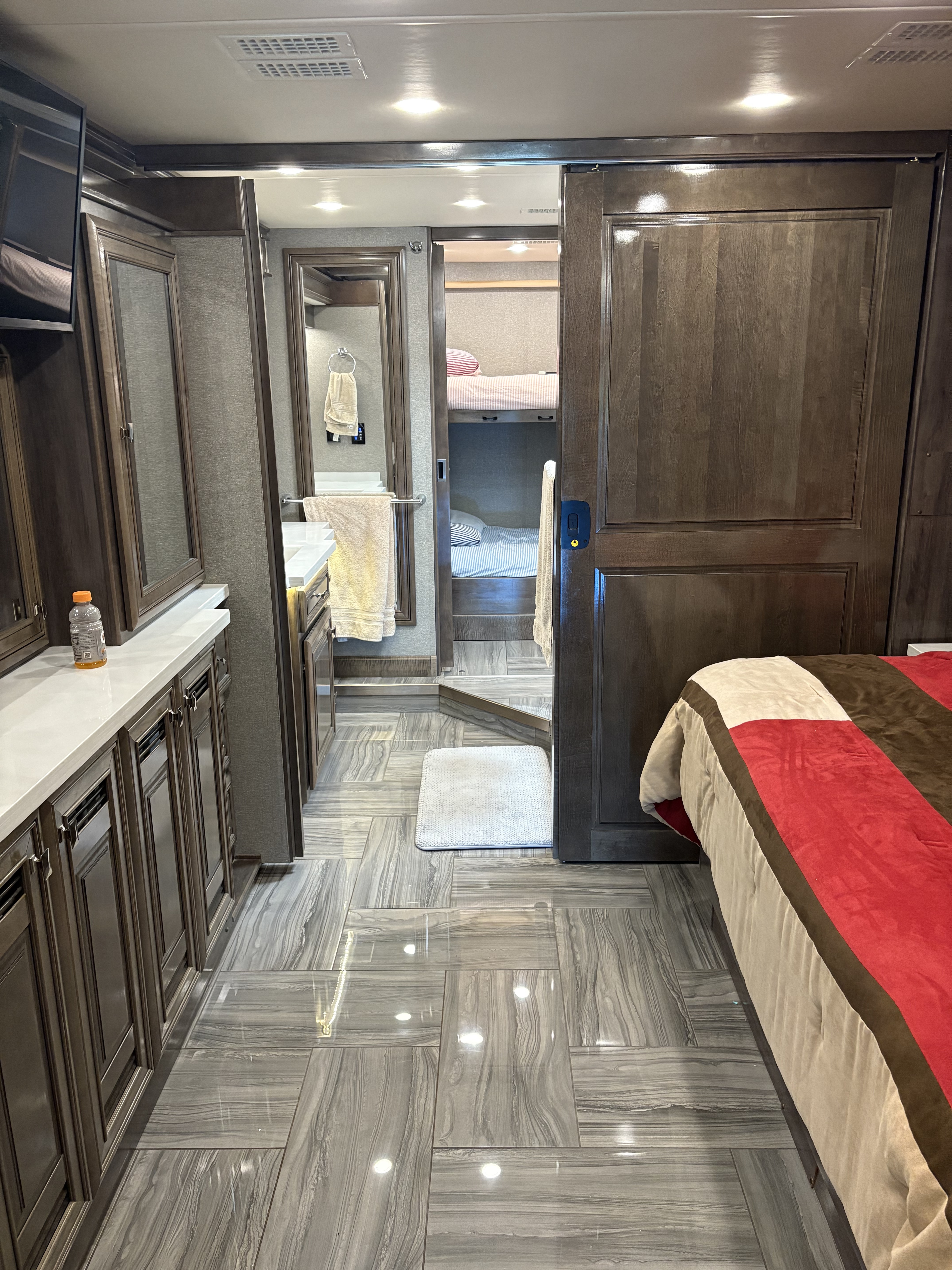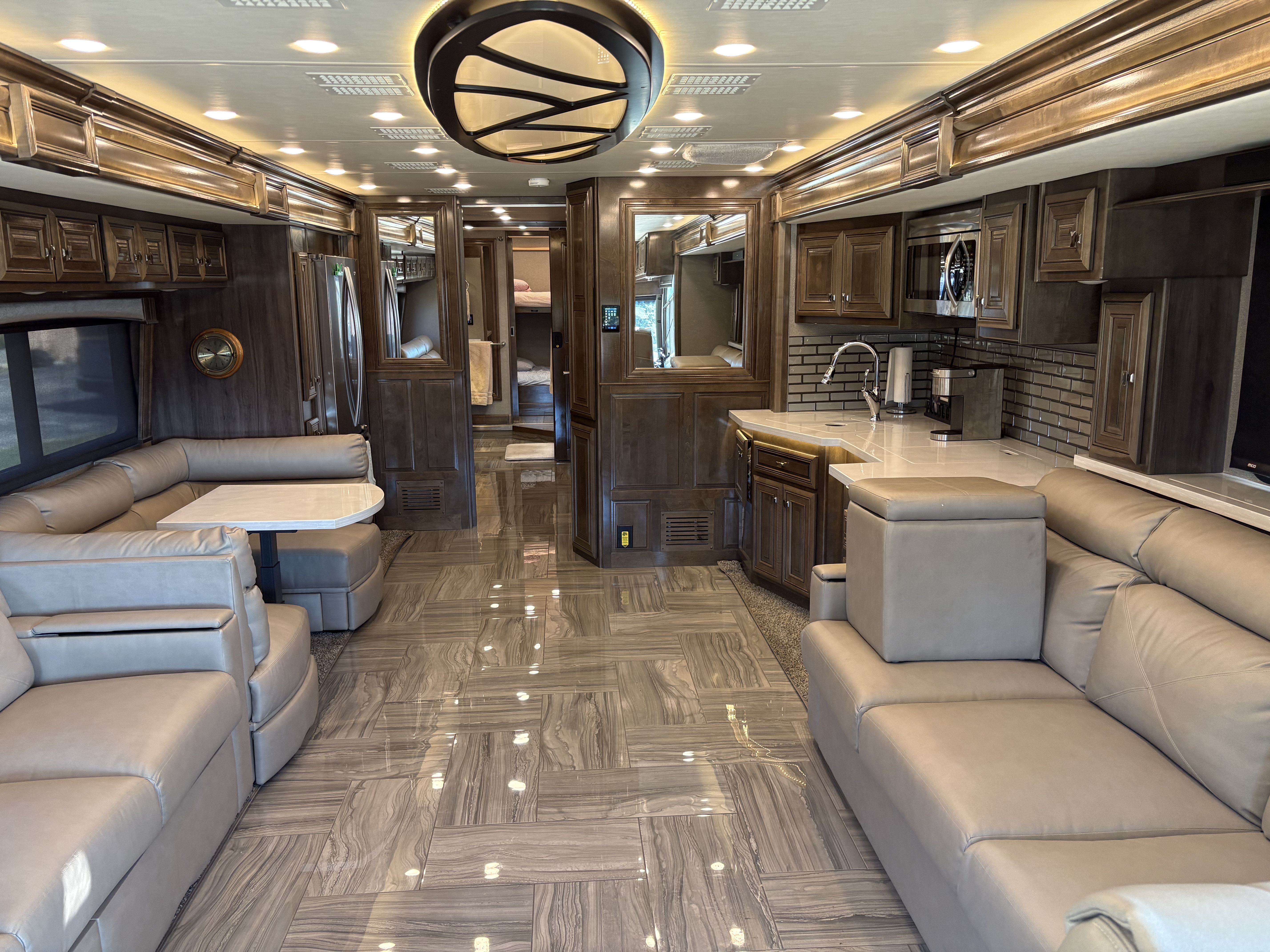 After 5 years we are selling our RV. Located in Uniontown PA. Sleeps 6. 47,872 miles on Cummins L9 450 horsepower XCM diesel motor. 931 hours on Cummins Onan 8000 generator. Allison transmission. Aqua Hot 400D diesel and electric water and air heater. All regular maintenance completed on the manufacturer’s schedules with no expenses spared to keep her running perfect. Two extra wide slide outs in galley provide one of the widest living room spaces available. Two slides in rear for King bed and master bath. Double bunk in rear can function as an oversized closet. Appliances include large double door stainless refrigerator, stainless dish washer, microwave/convection oven, double burner induction stove top, dirt devil vacuum system and washer and dryer units in master bedroom. Solar panel on roof allow battery charging and limited electric use while traveling without need to run the generator. Half bath near kitchen and master bath with large walk-in tile shower at rear. Both toilets operate with macerator flush. In floor heat in living room makes the space extra cozy on a cold night. Heat pump and Aqua Hot units supply heat in three zones throughout the coach and within the basement. Also, three roof top AC units provide ample cooling. Extremely large basement with slide out tray in fore bay provides a huge amount of storage space. Driver space includes Mobileye lane assist and live video monitor of rear, driver and passenger sides of the coach. All house batteries were replaced one year ago. Chassis batteries are 6 months old. Motor oil change completed at 39,500 miles at Freightliner in Gaffney. Generator service is done by me and about every 150 hours. Aqua Hot yearly service complete in April. Current vehicle inspection good through 11/25. This is an extremely clean and well-maintained coach ready for a new owner to enjoy.